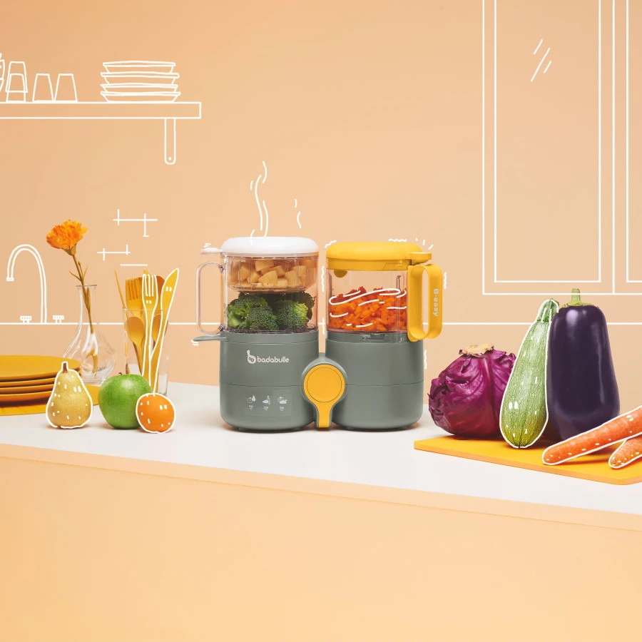 De B.easy bestaat uit twee delen. De linkerkant is een uitgebreide stoomkoker en een stoommandje met een totale capaciteit van wel 1300 ml. De rechterkant is een praktische blender met een capaciteit van 700 ml. Het grote voordeel van een stoomkoker is dat de belangrijke voedingsstoffen niet verloren gaan tijdens het koken, een stuk gezonder dus voor je kindje!Â