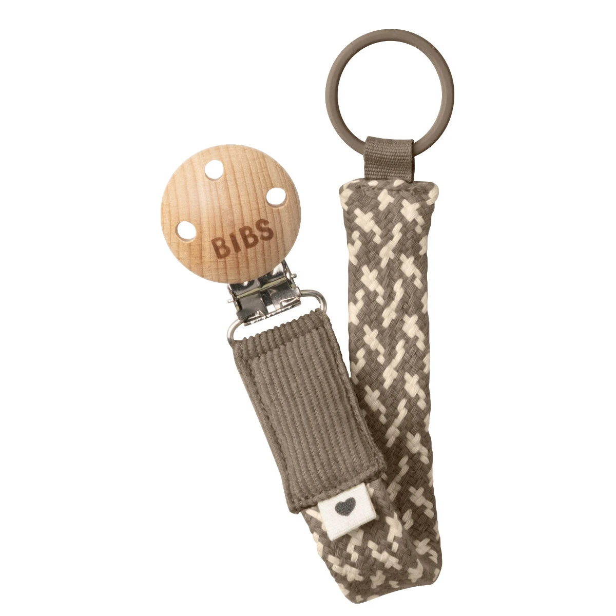 Dit fopspeenkoord heeft aan het ene uiteinde een ring zitten waaraan je de fopspeen vast kan maken (fopspeen niet meegeleverd). Aan het andere uiteinde zit een houten clipje waarmee je het koord aan de kleding van je kleine kan bevestigen.