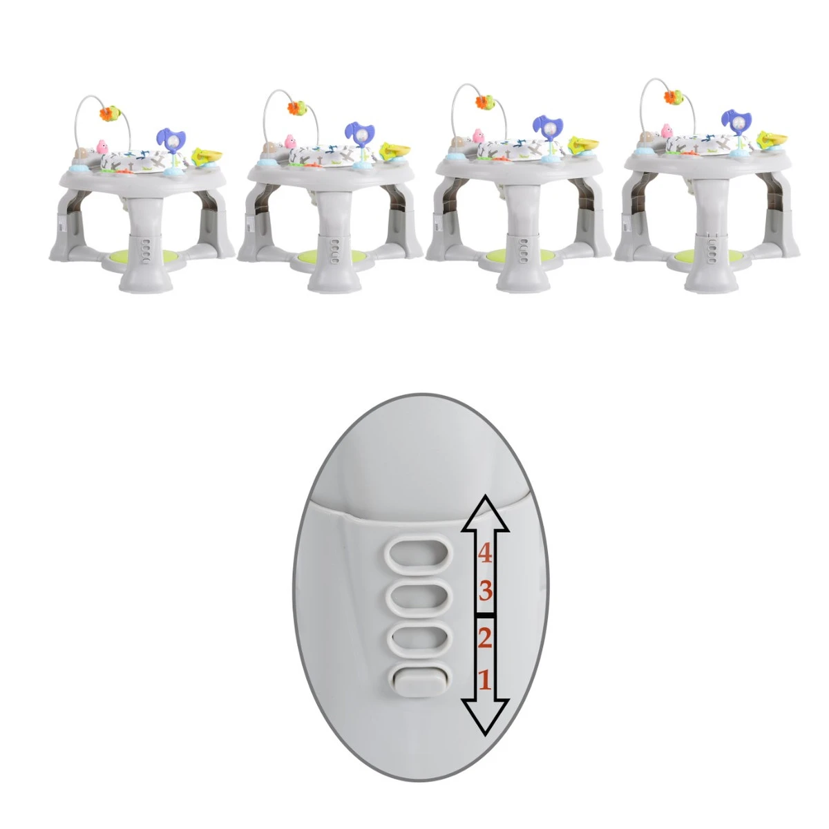 Wat zal jouw kleintje veel speelplezier beleven met dit activity center van Cangaroo. Als je kindje in het zitje zit, kan hij of zij zich 360° draaien en alle verschillende activiteiten ontdekken die rondom deze speeltafel zitten. Zo zitten er draaiende tandwieltjes, een boekje met een spiegeltje, leuke figuurtjes en verschillende beweegbare elementen aan. Midden onder het zitje zit een trampoline voor nog meer speelplezier. Deze trampoline is ook weg te halen. Kort om, je kindje zal zich niet snel vervelen!