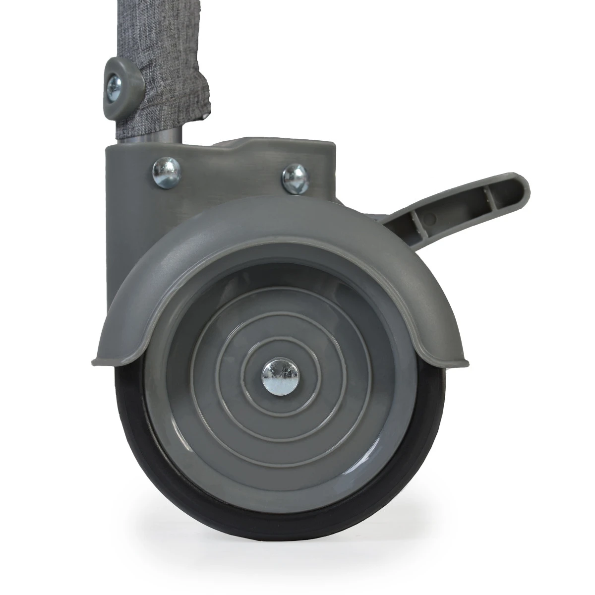Het bedje verplaatsen gaat erg gemakkelijk dankzij de 2 wieltjes. De remmen zorgen ervoor dat het bedje altijd veilig staat. Daarnaast wordt hij geleverd met een bodemmatrasje van 1,5 cm dik en twee handige ringen om bijvoorbeeld een muziekdoosje of knuffeltje aan te hangen.Â