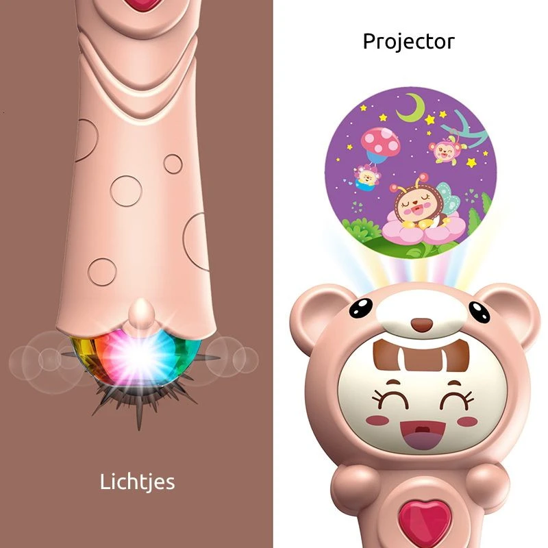 De loopwagen heeft verschillende leuke geluidjes en melodietjes wanneer je kindje op één van de knopjes drukt. De verschillende kleuren en vormen zijn erg leerzaam. Daarnaast bevordert het de ontwikkeling van de visuele en auditieve vaardigheden van je kindje. Verder heeft de loopwagen een grappig stuurtje en zelfs een multifunctionele staf! Deze kan je kleine ook los gebruiken en heeft een mooie projector in zich.