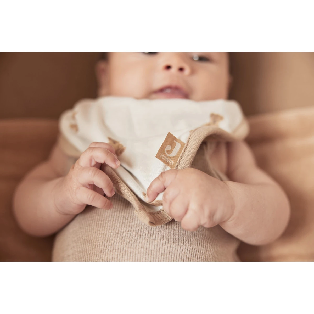 De slabber is gemaakt in de vorm van een bandana, waardoor hij eigenlijk heel de dag door te dragen is als accessoire. Een zeer handige en stijlvolle slabber voor je kleintje. Deze slab is GOTS-gecertificeerd en gemaakt van katoen met een jersey voering, ook gemaakt van 100% katoen. Wasbaar op 40°C.