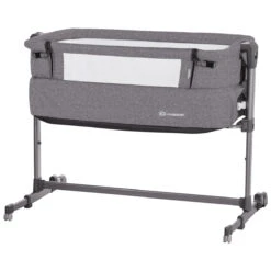 De zijwand van het wiegje kan je eenvoudig oprollen en vastzetten. Zo verander je het wiegje van normale wieg tot een wieg aan bed. De hoogte van het wiegje is op 5 hoogtes in te stellen, zodat hij altijd bij jou aan bed past. De afneembare hoes gemaakt van polyester is gemakkelijk schoon te maken en is machinewasbaar.Â