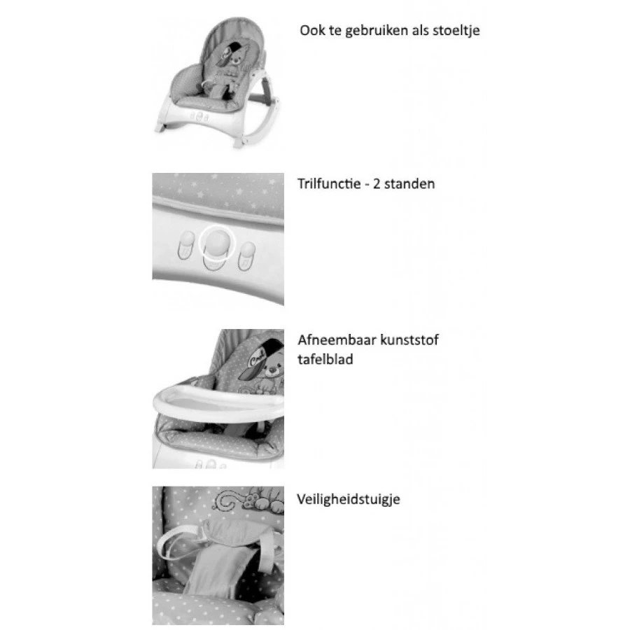 - Als wipstoel te gebruiken voor kleintjes vanaf 0+ maanden van max. 9 kg