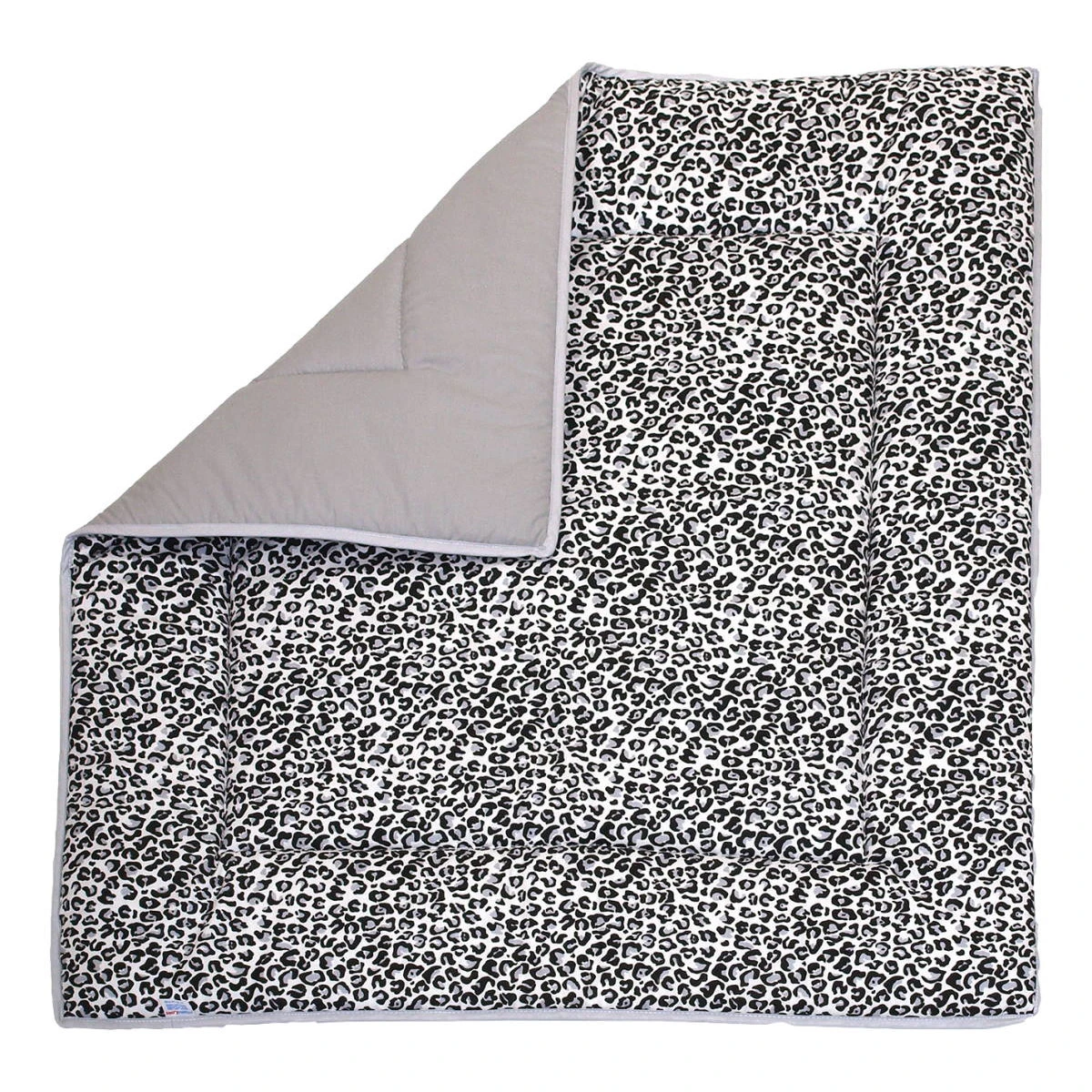 Dit fijne boxkleed van MamaLoes zal mooi staan in iedere box! Het boxkleed komt uit de Panter collectie en is aan de onderkant grijs van kleur met aan de bovenkant een grijs/witte panterprint.