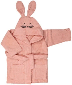 Deze badjas is extra leuk door het design van een konijntje! De capuchon heeft namelijk lange oortjes en het gezichtje van een konijn als printje. Zodra je kleine de capuchon opzet zal hij/zij er dus uitzien als een echt konijn. De riem van het badjas kan je zelf knopen.