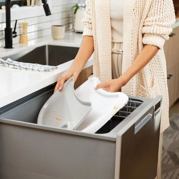 Alle onderdelen van de kinderstoel zijn makkelijk te reinigen met een vochtige doek. Het tafelblad heeft een inlegblad dat je er af kunt pakken. En wil je de bladen een keer grondig reinigen? Dan kunnen ze gewoon in de vaatwasser! De stoel is lichtgewicht (slechts 7,2 kg) en binnen een minuut te monteren.