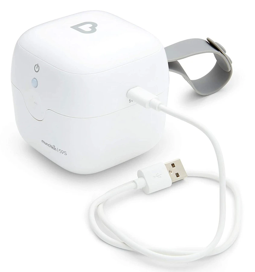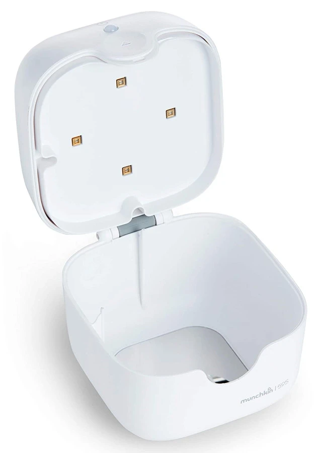 Deze draagbare sterilisator reinigt fop- en flesspenen en klein speelgoed in minder dan een minuut. Het reinigt 99% van de bacteriën en virussen met UV-licht, waardoor water en dergelijke niet meer nodig zijn! UV-licht is een veilige en bewezen methode om bacteriën te doden zonder schadelijke chemicaliën. De veilige UV-lamp schakelt automatisch uit wanneer de deksel wordt geopend.Â
