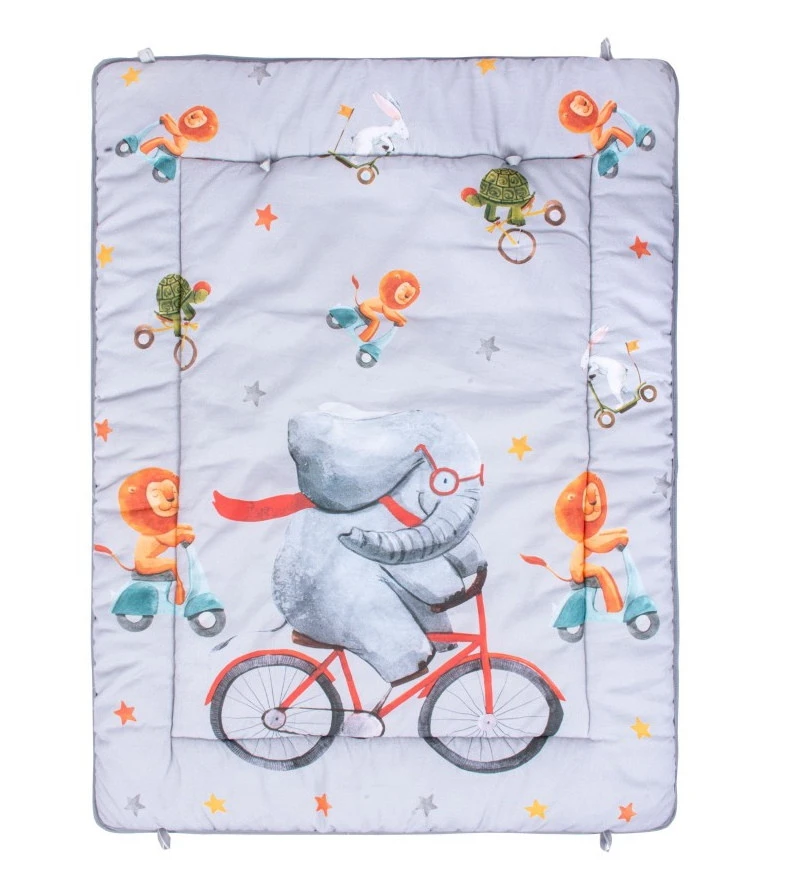 Het speelkleed is grijs van kleur met een lieve opdruk van verschillende diertjes.Â