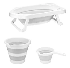 Met deze handige 3-delige badset van Sevibaby kun je jouw kleintje een heerlijk badje geven. Je pasgeboren baby kun je een fijn badje geven in de opvouwbare bademmer, wanneer hij of zij wat groter wordt kan je kleine in het opvouwbare badje. Daar spoel je de haartjes van je kindje gemakkelijk uit met de opvouwbare spoelbeker.