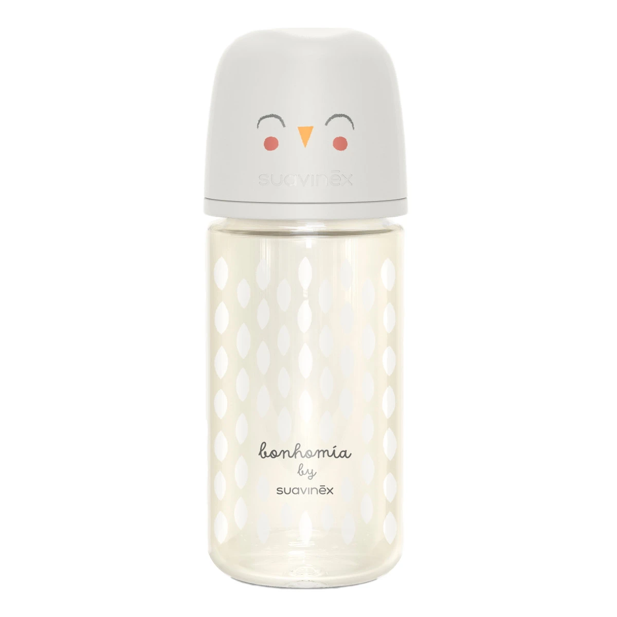 Wat een leuke fles is dit van Suavinex uit de bonhomia collectie! Deze glazen fles is perfect van formaat en zorgt ervoor dat de voeding voor jouw kindje sneller warm wordt en blijft. De buitenkant van de fles is minder warm dan de voeding in de fles zelf, wat het prettig maakt om de fles vast te houden.