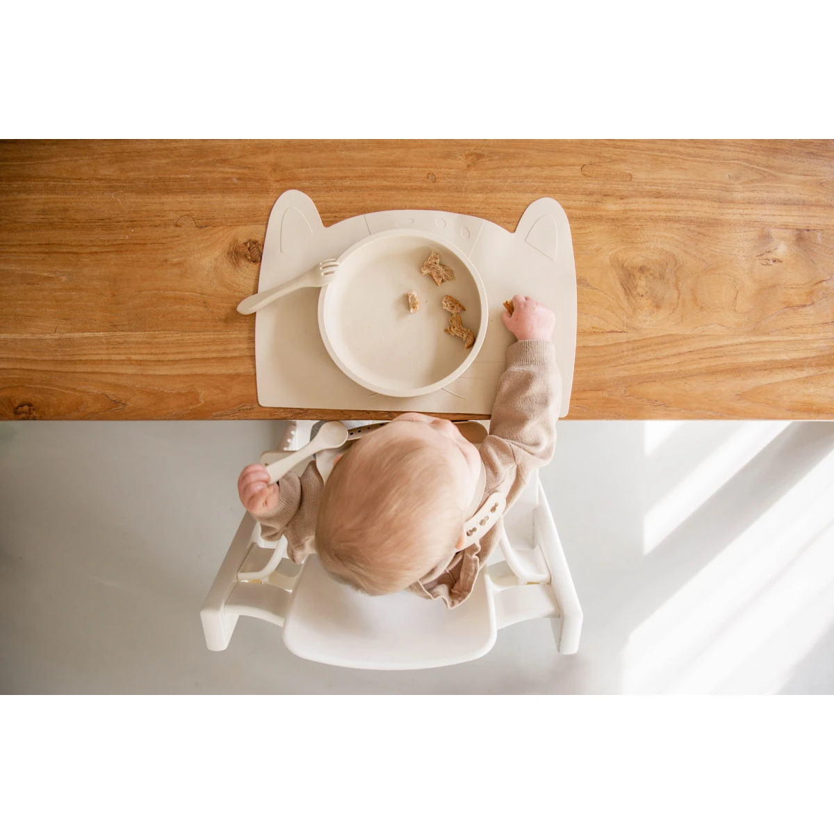 Dit kinderbordje is gemaakt van 100% LFGB siliconen. Hierdoor staat hij stevig op de tafel en kan hij ook tegen een stootje. Daarnaast kan dit handige bordje gewoon in de magnetron en zelfs in de vaatwasser.Â
