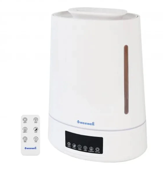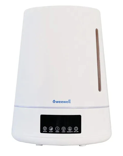 De ideale luchtvochtigheid in huis ligt tussen de 40 en 50%. Bij gebruik van verwarming en airconditioning kan het vochtgehalte in de lucht snel dalen. Dit kan leiden tot droge sinussen en een droge mond, vooral bij baby’s. Deze luchtbevochtiger van Weewell verspreid een koele waterdamp in de lucht, waardoor klachten aan de bovenste luchtwegen worden verlicht.